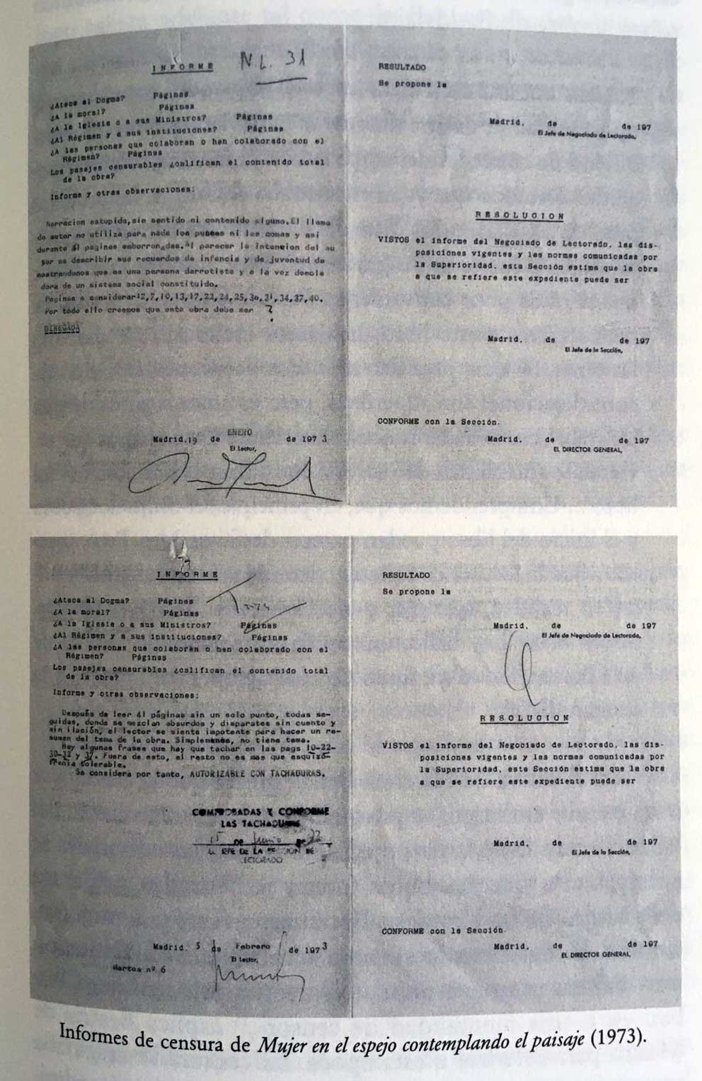 Informes de censura de Mujer en el espejo contemplando el paisaje (de Una curiosidad sin barreras, Carlota Álvarez Maylín, Tusquets, 2025) |